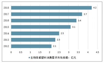 2012-2018年中國生物降解塑料消費需求市場規(guī)模走勢