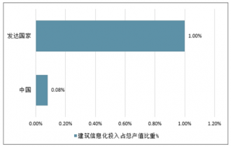 中國(guó)與發(fā)達(dá)國(guó)家建筑信息化投入占總產(chǎn)值比重情況對(duì)比