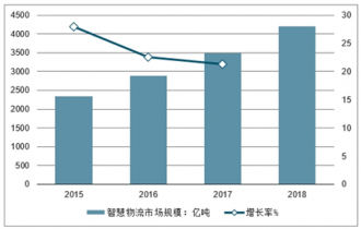 2016-2018年中國智慧物流行業(yè)市場規(guī)模及增長(單位:億噸,%)