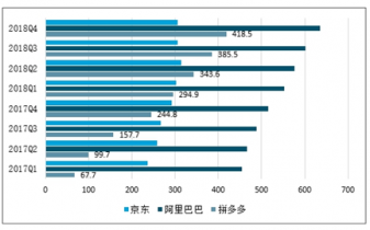 三大電商平臺(tái)活躍用戶數(shù)(百萬(wàn)人)