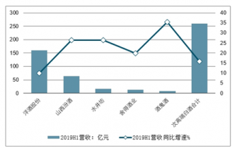2019H1中國(guó)次高端價(jià)格帶品牌營(yíng)業(yè)收入及增速