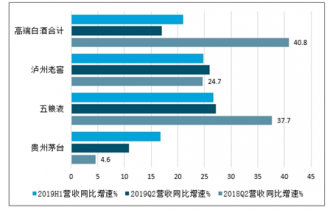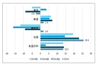 2019年上半年白酒上市公司營收、凈利潤分別增19.4%、25.6%,分別超食品飲料上市公司營收、凈利5.8個百分點、4.3個百分點,在食品飲料主要子行業(yè)中營收增速最快。