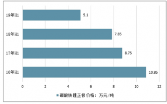 2016-2019年H1磷酸鐵鋰正極價(jià)格情況