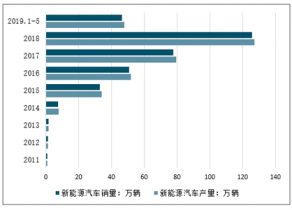 2019年5月,我國新能源汽車產銷分別完成11.2萬輛和10.4萬輛,比2018年同期分別增長16.9%和1.8%。1-5月,新能源汽車產銷分別完成48.0萬輛和46.4萬輛,比上年同期分別增長46.0%和41.5%。