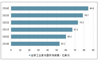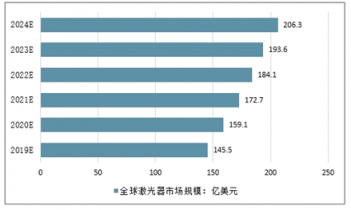 全球激光產業發展受國際宏觀經濟環境影響較大,尤其是激光加工設備行業,而隨著激光新的應用領域的不斷擴展,以及應用程度的加深,預計未來幾年全球激光產業還將繼續保持增長,預計到2024年全球激光器銷售收入有望達到206.3億美元,其中工業激光器銷售規模將在84.6億美元左右,與之相對應的工業光纖激光器市場規模將有望達到48.3億美元。