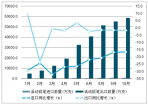 2019年1-10月中國活動鉛筆進(jìn)出口數(shù)量及進(jìn)出口金額統(tǒng)計表