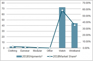 2018年世界范圍內(nèi)的可穿戴產(chǎn)品預(yù)測(數(shù)以百萬計的出貨量)