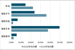 2018-2022年可穿戴設(shè)備細(xì)分領(lǐng)域出貨份額情況