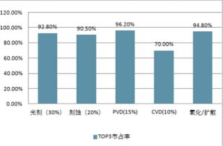 半導(dǎo)體制造核心設(shè)備市場(chǎng)Top 3市占率情況