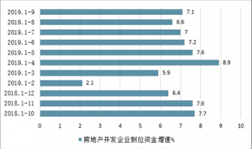 2018-2019年1-9月房地產(chǎn)開發(fā)企業(yè)到位資金增速情況