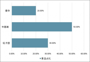 根據(jù)對中國飯店協(xié)會數(shù)據(jù)整理,目前我國酒店行業(yè)豪華、中高端、經(jīng)濟型的比例約為8%、27%、65%,目前國內(nèi)酒店市場由低端經(jīng)濟型酒店占主導。而歐美等發(fā)達國家成熟的酒店市場通常呈現(xiàn)兩邊小中間大的“橄欖型”結(jié)構(gòu),目前歐美酒店業(yè)豪華、中高端、經(jīng)濟型的比例約為20%、50%、30%,未來我國酒店行業(yè)結(jié)構(gòu)布局將向歐美等發(fā)達國家酒店行業(yè)結(jié)構(gòu)靠近,呈現(xiàn)中高端酒店為主體的特征。從目前國內(nèi)酒店市場結(jié)構(gòu),中端酒店的發(fā)展仍有極大發(fā)展空間,未來中國的中高端酒店將迎來中長期的快速發(fā)展階段。