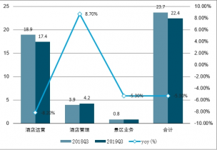 2018Q3-2019Q3首旅酒店分業務收入及增速(單位:億元)