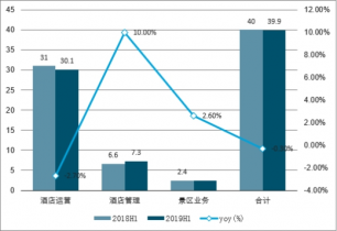 2018-2019H1首旅酒店分業務收入及增速(單位:億元)