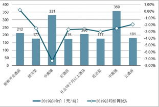 2019年Q3首旅如家酒店均價及增長情況