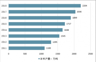 2011-2018年中國涂料產(chǎn)量情況