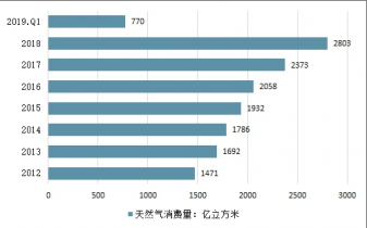 2012-2019年Q1中國(guó)天然氣產(chǎn)量情況