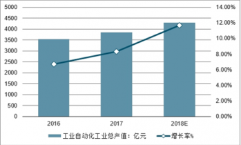 2016-2018年中國工業(yè)自動(dòng)化工業(yè)總產(chǎn)值及增長率
