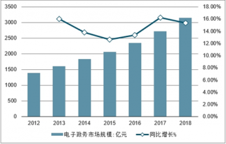 2012-2018年中國電子政務(wù)市場規(guī)模及同比增長走勢
