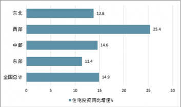 2019年1-9月份東中西部地區(qū)住宅開(kāi)發(fā)投資同比增速情況