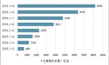 2019年1-9月房地產(chǎn)開(kāi)發(fā)企業(yè)土地成交價(jià)款