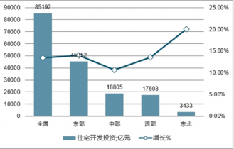 西部地區(qū)投資26009億元,增長8.9%,提高0.7個百分點;東北地區(qū)投資4720億元,增長17.5%,提高1.3個百分點。
