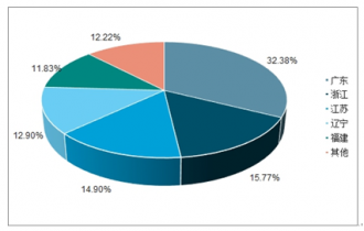2018年金屬包裝容器制造業(yè)實現(xiàn)出口交貨值60.99億元,同比增長2.63%。出口交貨值排在前五位的地區(qū)依次為廣東省、浙江省、江蘇省、遼寧省和福建省。廣東省完成累計出口交貨值19.75億元,占比32.38%,同比增長8.97%;浙江省完成累計出口交貨值9.62%,占比15.77%,同比增長7.62%;江蘇省完成累計出口交貨值9.09億元,占比14.9%,同比增長16.31%;遼寧省完成累計出口交貨值7.87億元,占比12.9%,同比增長19.41%;福建省完成累計出口交貨值7.22億元,占比11.83%,同比增長43.63%。