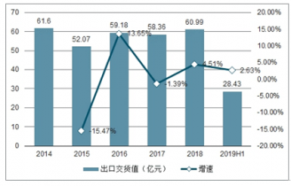 2014-2019H1年金屬包裝容器制造業(yè)出口交貨值及增速趨勢