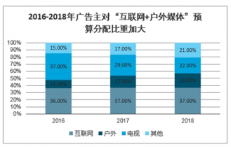 2016-2018年廣告主對(duì)“互聯(lián)網(wǎng)+戶外媒體”預(yù)算分配比重加大