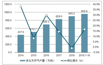 2019年1-10月中國液化天然氣產量及增速統(tǒng)計表