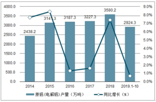 2019年1-10月中國原鋁(電解鋁)產(chǎn)量及增速統(tǒng)計(jì)表