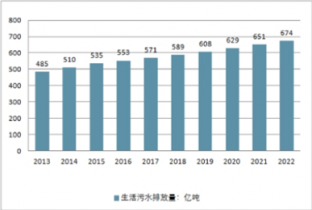 中國城鎮(zhèn)化進程加快導致城鎮(zhèn)耗水量增加,自2013年起,生活污水排放量持續(xù)增加,從2013年的485億噸增至2017年的571億噸,復合年增長率為4.2%。基于城鎮(zhèn)化,人口增長及經(jīng)濟發(fā)展的持續(xù)趨勢,自2017年至2022年,預計生活污水排放量將以3.4%的復合年增長率增長。