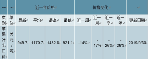 2019近一年中國蘋果汁價格情況