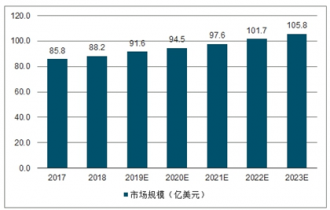 2017-2023年全球耳機市場規(guī)模及預測圖