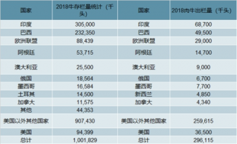 2018年全球主要國家牛存欄量及出欄量情況(千頭)