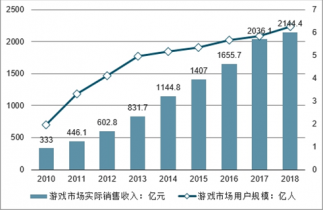 2010-2018年中國游戲市場實際銷售收入及用戶規(guī)模走勢
