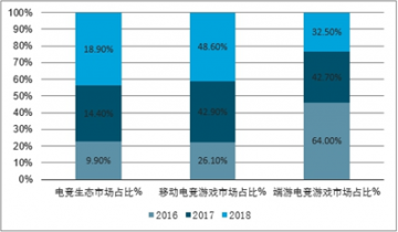 2016-2018年中國細分電競市場規(guī)模占比