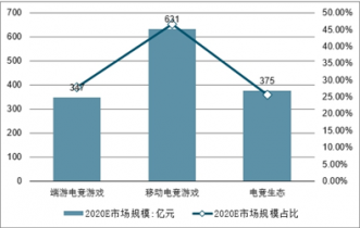 2020年中國電競細分市場規(guī)模及占比情況