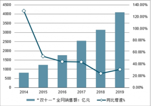 2014-2019年“雙十一”全網(wǎng)總成交額走勢