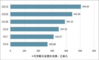2016-2021年全球可穿戴設(shè)備營收規(guī)模走勢預(yù)測