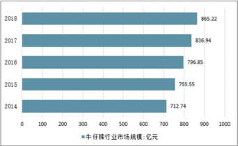 2018年我國牛仔褲行業(yè)市場規(guī)模約865.22億元,同比2017年的836.94億元增長了3.38%。
