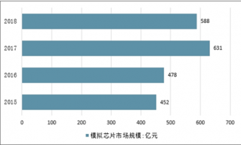 2018年全球模擬芯片2018年市場規(guī)模為588億美元,同比增長10.80%。