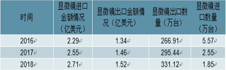 2016-2018年中國顯微鏡進(jìn)出口情況