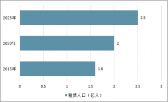 流動人口和畢業(yè)大學生是住房租賃市場的主力軍,流動人口伴隨著城市化率的提高已經(jīng)出現(xiàn)放緩趨勢,而伴隨著房價太高,越來越多年輕人加入租房群體,租賃市場需求規(guī)模大,供應(yīng)規(guī)模還在起步階段,發(fā)展前景廣闊。根據(jù)統(tǒng)計,2015年中國租賃市場成交總額已經(jīng)超過1萬億元,租金人口接近1.6億。預(yù)計到2020年租金成交總額將達到2萬億元,租賃人口達到2億;2025年租金成交總額有望達到3.2萬億元,租賃人口達到2.5億。