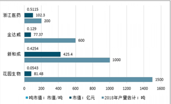 維生素D3代表企業(yè)產(chǎn)量估計(jì)及噸市值情況