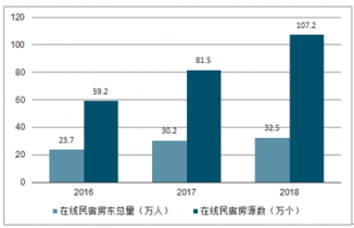 2016-2018年中國(guó)在線民宿房源數(shù)和房東數(shù)統(tǒng)計(jì)