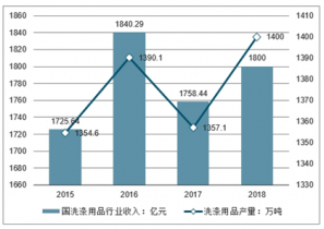 2016-2018年中國洗滌用品行業(yè)收入及產(chǎn)量走勢