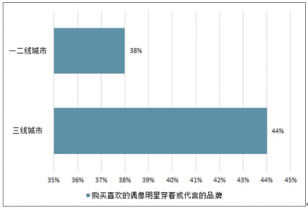 三線城市的消費者也更愿意為明星代言買單。44%的三線城市消費者表示會購買自己喜歡的偶像明星穿著或代言的品牌,高于一、二線城市的38%。