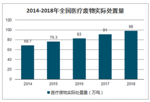 2014-2018年全國醫(yī)療廢物實際處置量