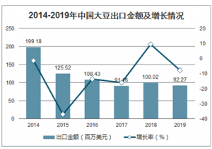 從金額方面來看,2019年1-12月中國大豆出口金額為92.27百萬美元,同比下降7.8%。