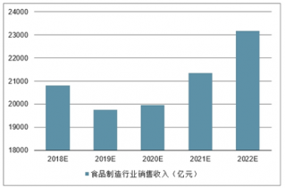 2018年我國食品制造行業(yè)銷售收入將達到20,806億元,未來五年(2018-2022)年均復(fù)合增長率約為2.73%,2022年將達到23,177億元。